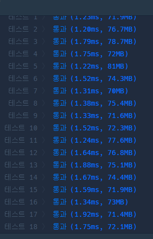 테스트 16 〉 | 통과 (1.99ms, 80MB) |